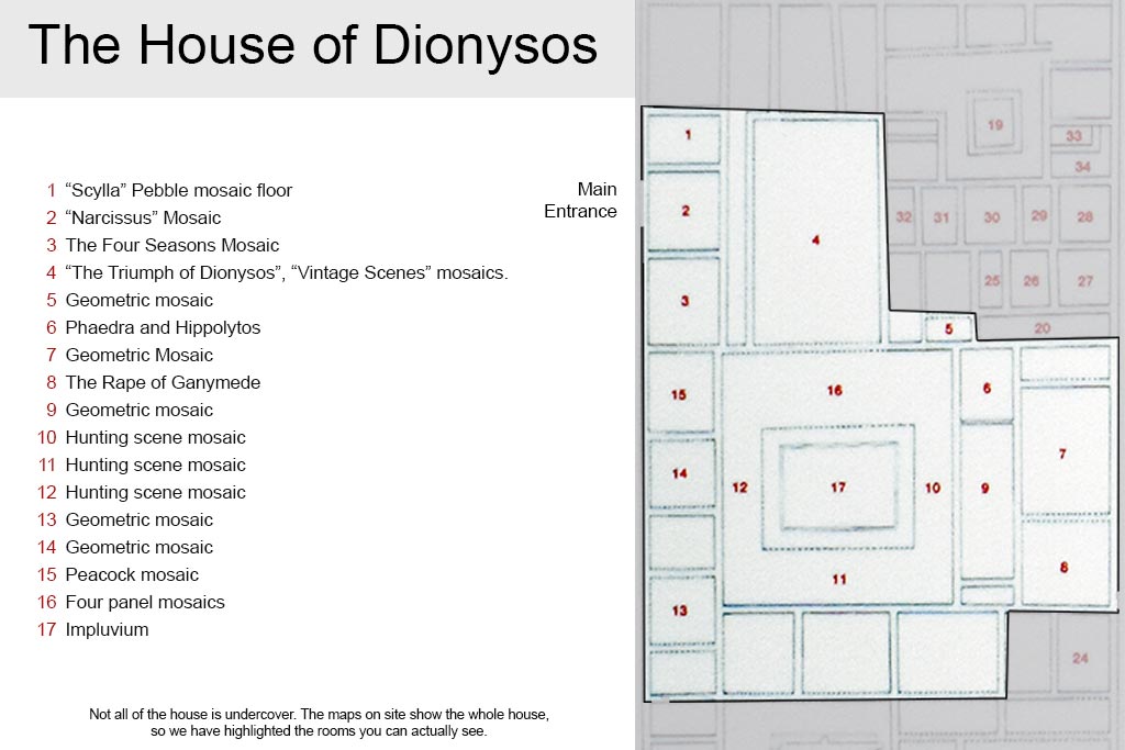 Each of the mosaics is singposted and has a handy map. However, we found the map to be a bit confusing, as it also showed rooms that were not in the covered section, including some that were numbered (from 18 onwards). We have highlighted the covered area so you can see more clearly where you are.