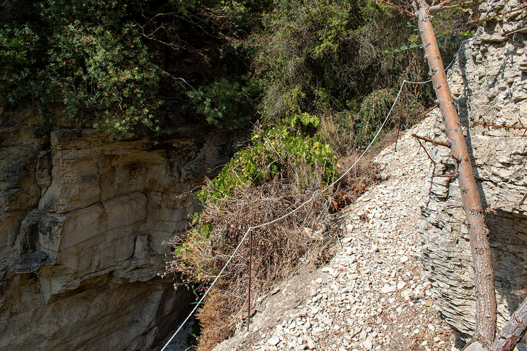You can see how narrow the path is now. If you do hug the cliff, be aware that the green you can see is a caper plant which is prickly. But what a view!