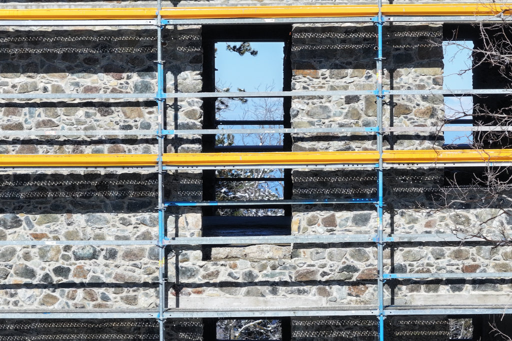 The hotel is now surrounded by scaffolding as well. I remember on the tour they explained how the walls had all been injected with material to reinforce them. It was a mammoth job.