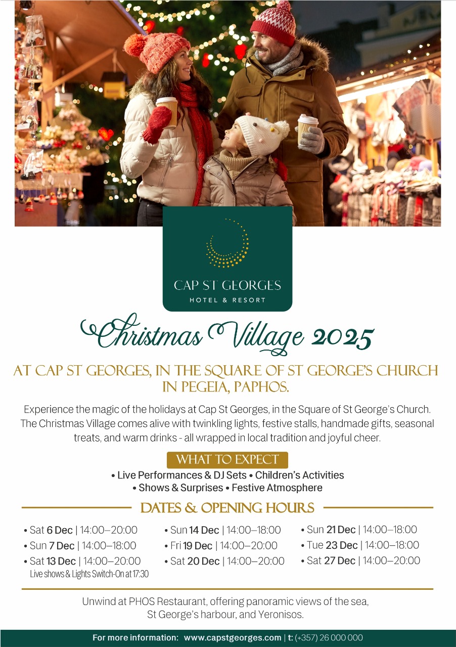 This Christmas, magic comes alive in a truly special place. At Cap St Georges, in the square of the Church of Saint George, in Peyia, Paphos.