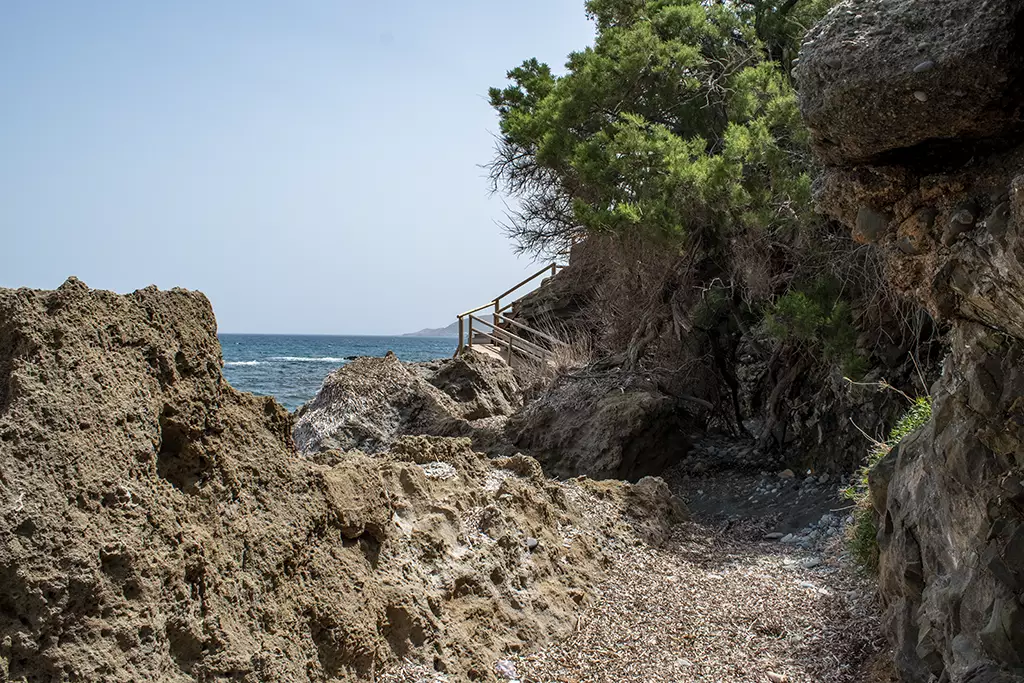 As I headed back to the stairs I hugged the cliff more. I just love the way that the plant life comes down to meet the beach.