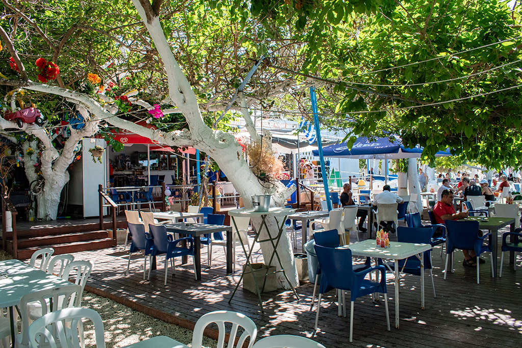 Speaking of roads, there is plenty of parking along the entire length of Riccos Beach. So don't worry if you cannot find a space here, unless you desperately want to visit Riccos Bar. Obviously the parking close to the bars gets filled first, but the beaches go on for some time. There is also parking on the left. When you park though, make sure you can easily get out again, to avoid getting yourself blocked in.