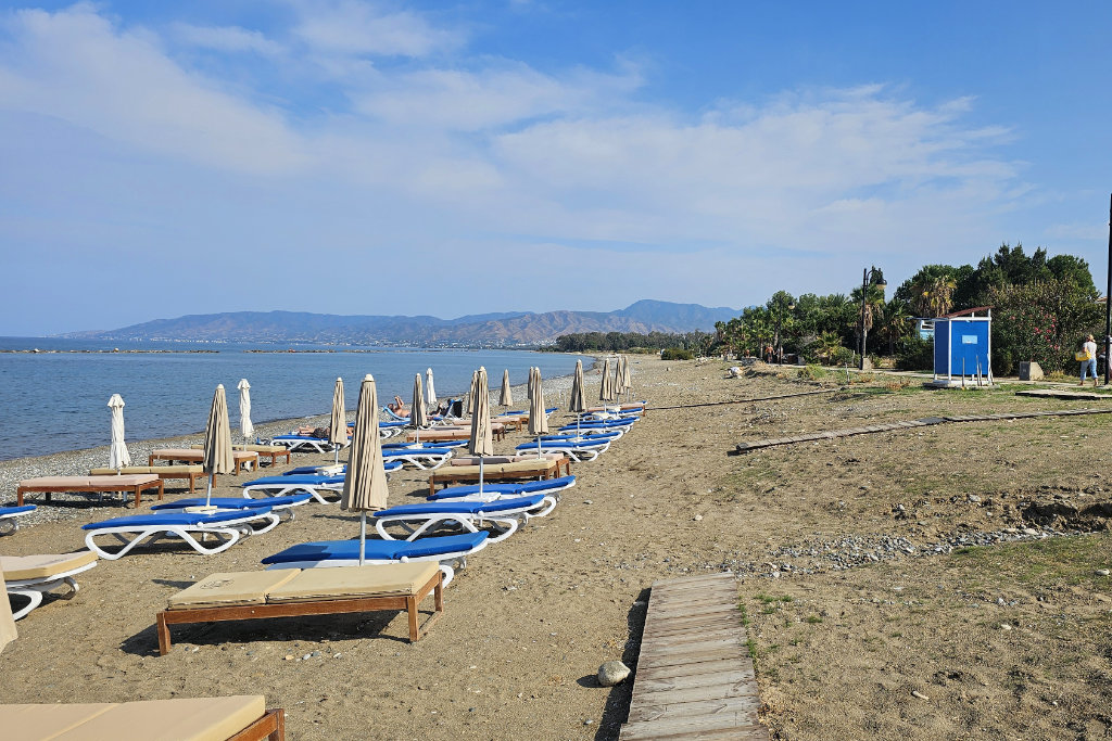 The north coast of Paphos tends to have slightly warmer water. So if you are a bit of a wuss you might want to head here. The sunbeds are still out at Polis Municipal Beach.
