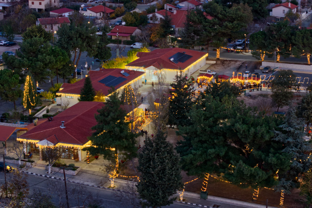 The first thing you may hear is the sound of the festive train that is driven around Statos-Agios Fotios. It blares out a mix of Christmas hits and each ride lasts a few minutes.