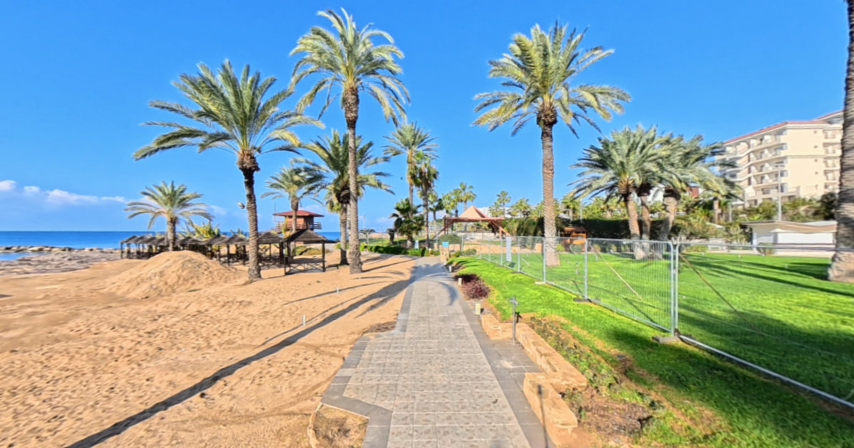 Time to pre-emptively burn off some of the Christmas excesses with a walk along the lovely Paphos Boardwalk. Starting at St Nicholas Chapel we stroll past the Pioneer Beach Resort and Asimina Suites. Both are closed at the moment, with the Asimina going so far as to have a new floor installed. After that we walk past the Aqua Mare and Ivi Mare, which is very much open for business.