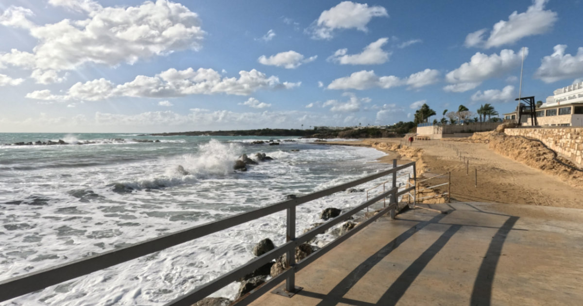 On Sunday I visited most of the beaches in Paphos to see how they were fairing in the recent storms and gales. I start with a little walk around Geroskipou Beach, before moving on to Pachyammos and SODAP beaches. Out of politeness I have a brief stroll along Paphos Sea Front before checking out Lighthouse and Venus Beaches. Then it was on to Sandy Beach and Potima Bay, finishing with brief walks at Coral Bay and Corallia Beaches. I wouldn't recommend swimming at the moment, but it is a great place for some bracing exercise!