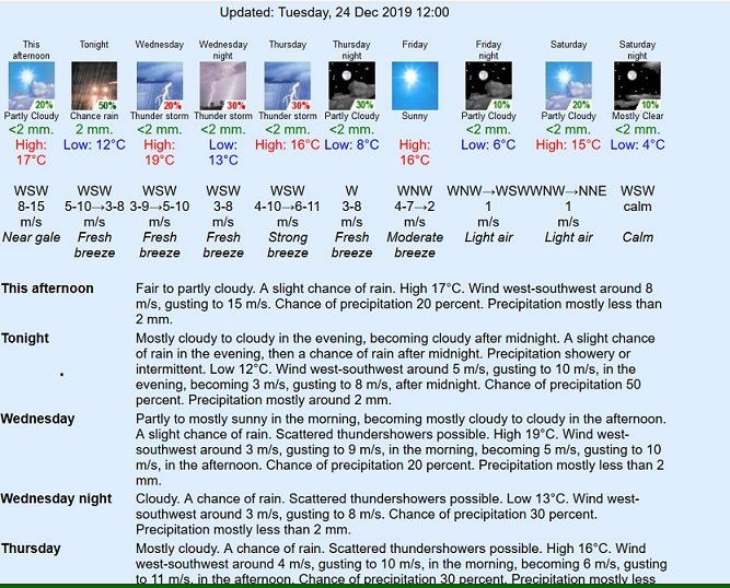 Where we are, the weather hasn't been extreme, today, only 11.8 mm rain (up to 12:30) and wind gust maxed at 11.3 m/s (40.68 km/h, 21.97 knots, 25.28 mph, 37.03 ft/s, 678 m/min, 2224 ft/min, 6 Beaufort) at 10:24.