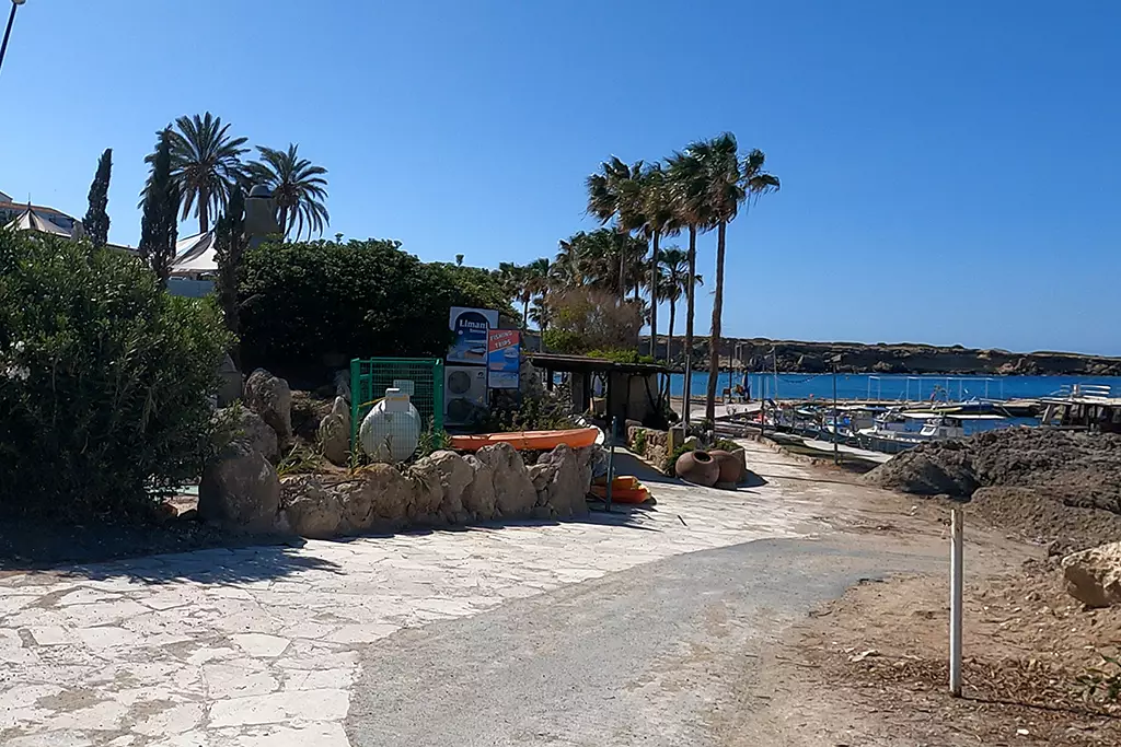 At first glance you might think that you are walking into private property, but all the beaches in Cyprus are open to everybody. You are allowed down here, so go and take a look.